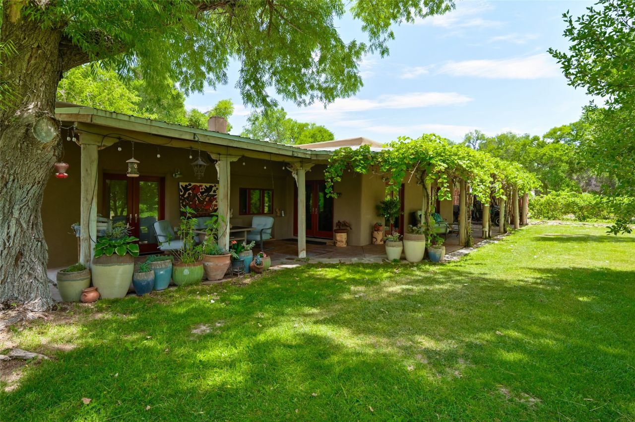 Heavenly 4.5-Acre Estate in Pojoaque Valley ? Vineyard, Casitas & More! Rare opportunity to own one of the most spectacular estates in the Pojoaque Valley, just minutes from downtown Santa Fe. This 4.5-acre property offers a serene retreat with 3 acre-feet of domestic water rights and 6.91 acre-feet of irrigation water rights, supporting both vineyard expansion and lush garden potential. The grounds are also home to mature apple, plum, pear, and cherry trees. The main residence is a classic adobe featuring 4 bedrooms and 2 bathrooms (ESTIMATED SQ. FT. 2300), with traditional New Mexican details including vigas, brick floors, two rock fireplaces, and a spacious portal perfect for outdoor living. Three additional casitas (ESTIMATED TOTAL 3100 SQ. FT. COMBINED) provide excellent flexibility: 1BR/1BA Casita - 800 sq. ft. 2BR/2BA Casita - 811 sq. ft. 1BR / 1BA Casita ready for your personal touch and renovation vision - 1500 sq. ft. Ideal for short-term rentals, guest stays, or multi-generational living. Outdoor amenities offer exceptional entertainment and relaxation opportunities: 25-person hot tub/pool Firepit lounge area Outdoor bathrooms and showers Brick pizza ovens Wine cellar 2 RV hookups A large metal barn offers generous storage or potential for workshop, studio, or event use. Whether you dream of running a boutique vineyard, hosting retreats, or simply living in peaceful luxury, this unique Pojoaque Valley estate delivers charm, privacy, and unlimited potential.